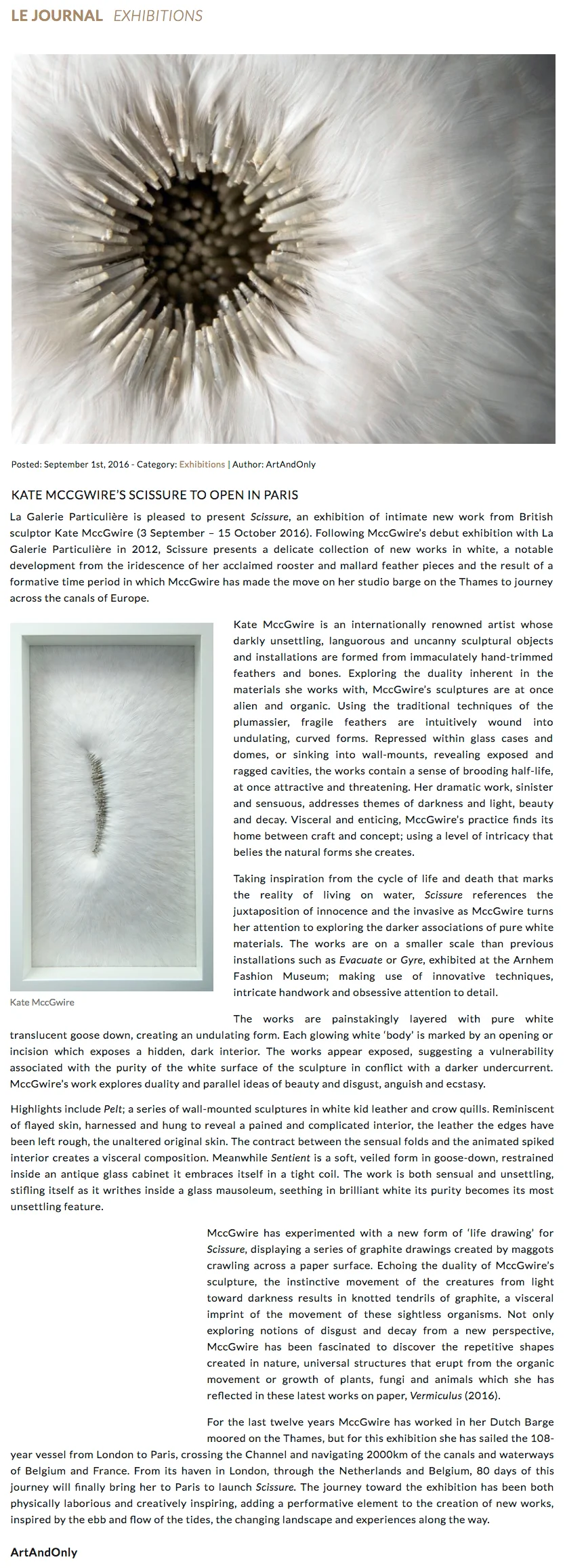 Kate MccGwire's Scissure to open in Paris | ArtAndOnly | 1 September 2016 | Click here to view live article.