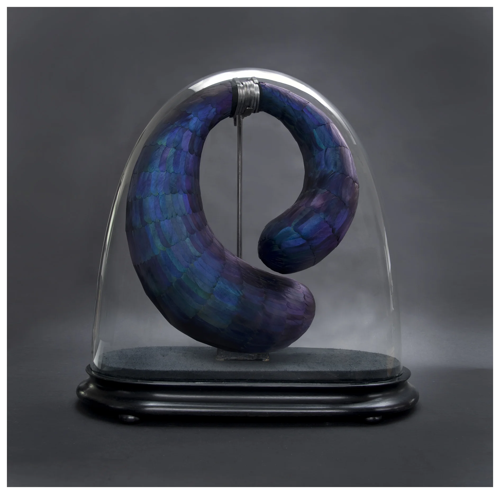 Mixed media with mallard feathers in antique dome