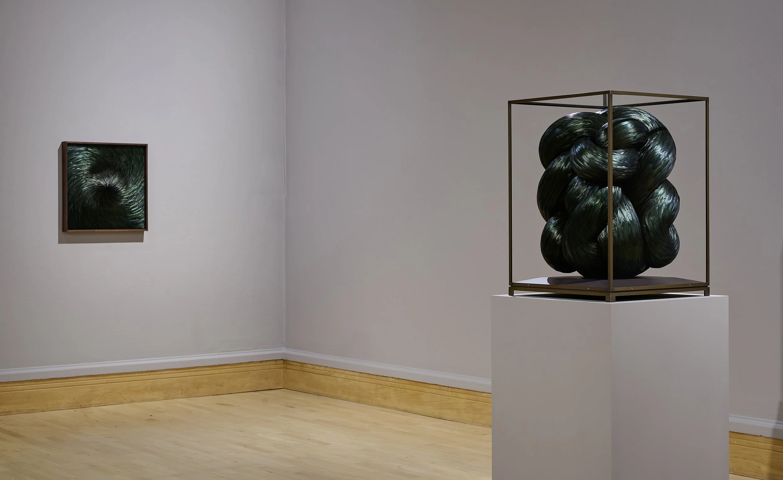 Visceral, oily, sinister and compelling coils elicit in us a mix of sexual attraction and fearful desire. The sheen, the iridescence, the subtle colour shifts, all contribute to the way we see these shifting, unruly forms that yet, on occasion, can still appear calm and still. She says, “I’m exploring that fine line, not wanting to disgust or shock, but rather subtly to unsettle the viewer in some way.”