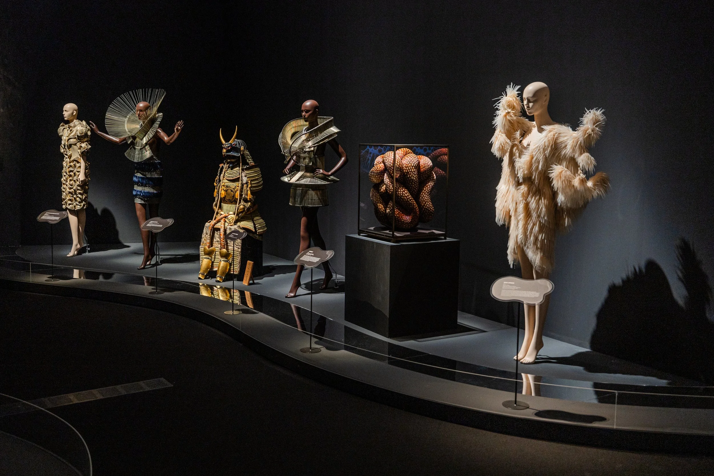 Kate MccGwire continues her exploration of the complexities and grotesque underbelly of beauty, where every attraction has its violent or dark opposite. Drawing you in with intricate patterning and seductive aesthetics of glistening feathers, much like a bird attracting a mate, MccGwire’s forms are both sinister and compelling, evoking a mixture of sexual attraction and fearful desire.