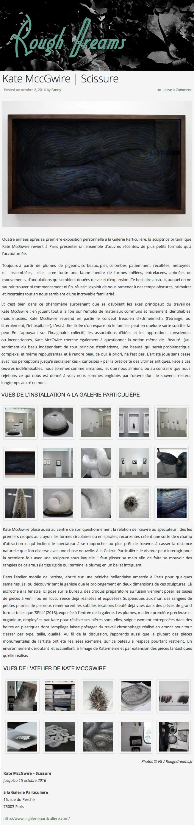 Kate MccGwire: Scissure | written by Fanny Giniès | Rough Dreams | 8 October 2016 | Click here to view live article.