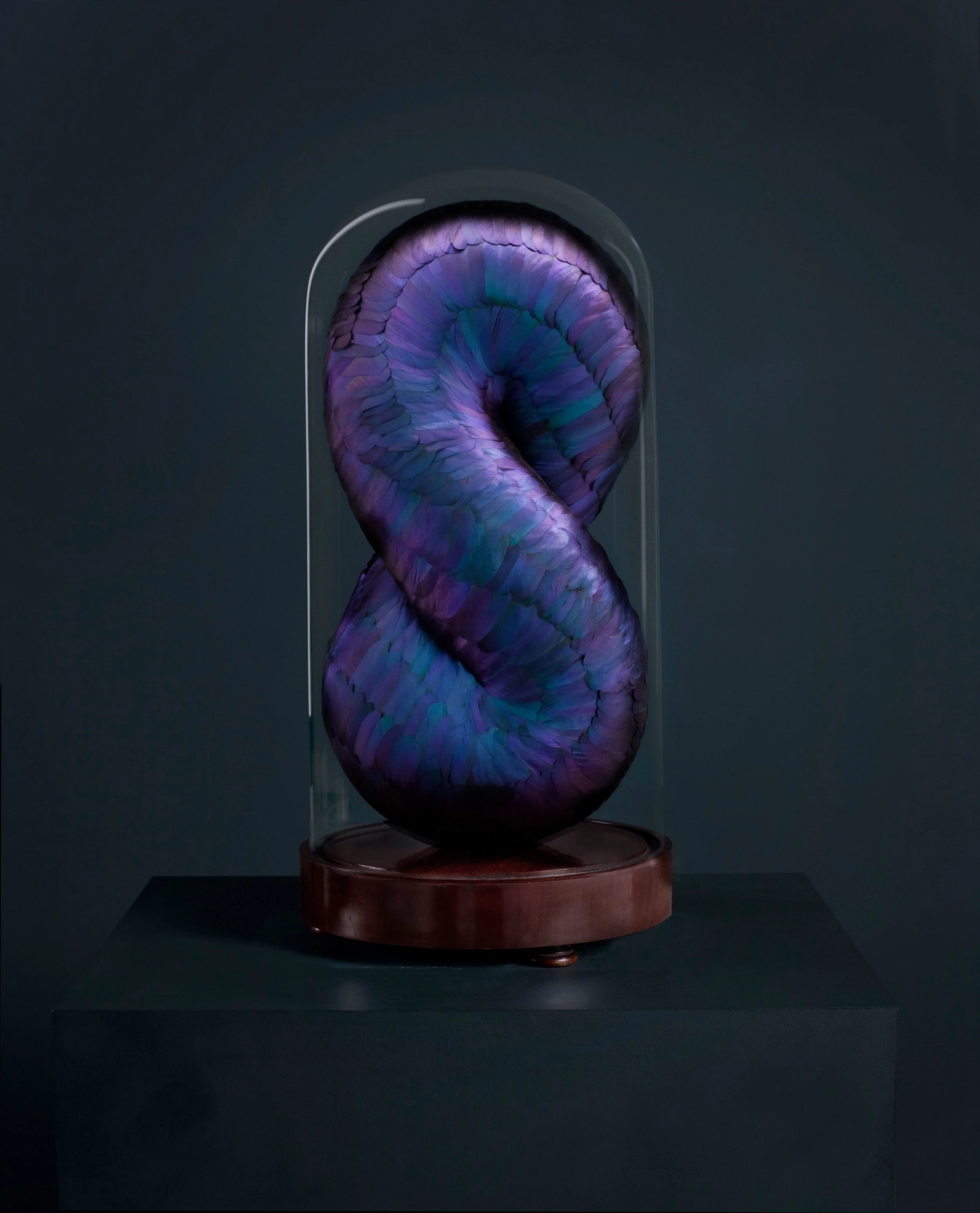 Mixed media with mallard feathers in antique dome