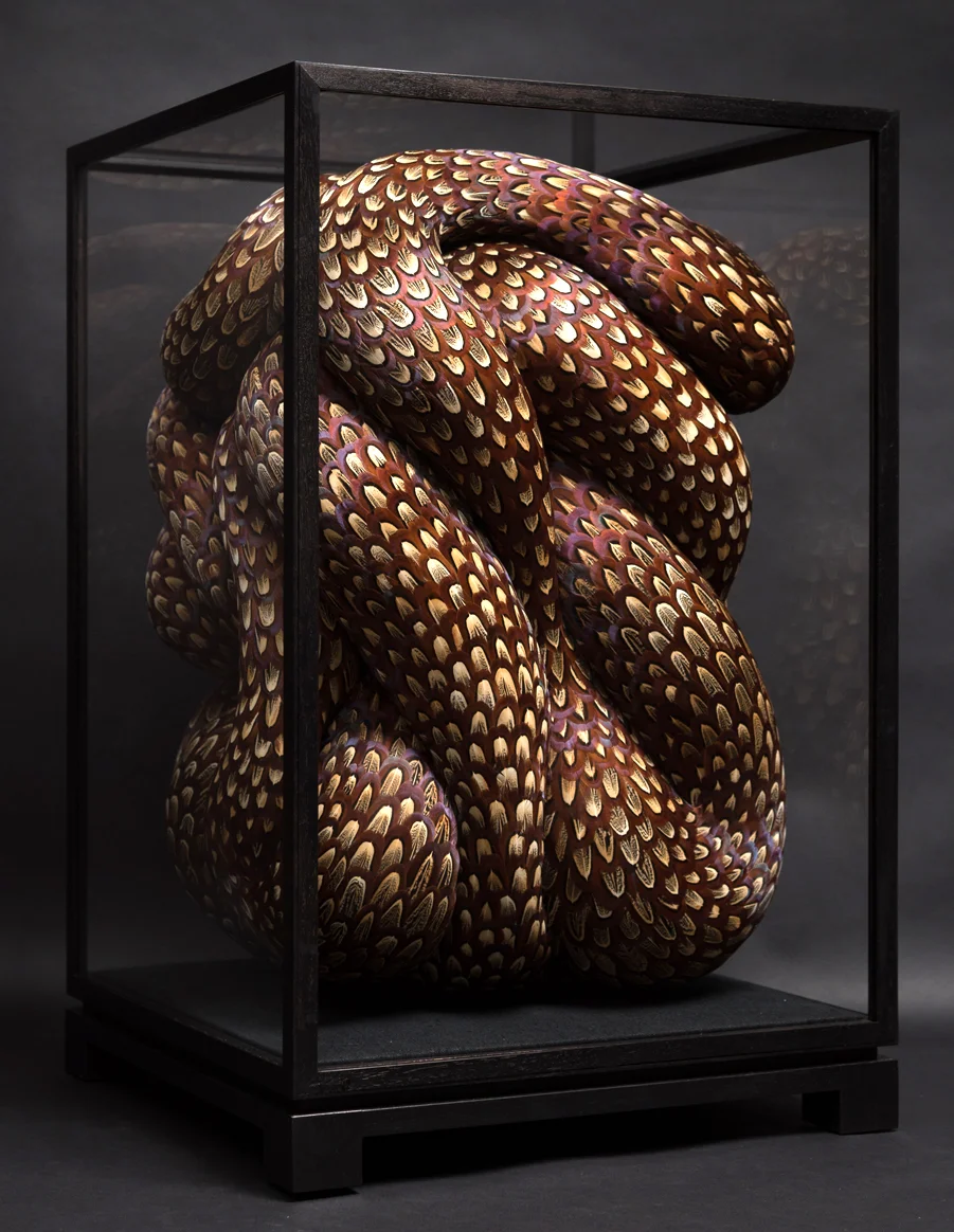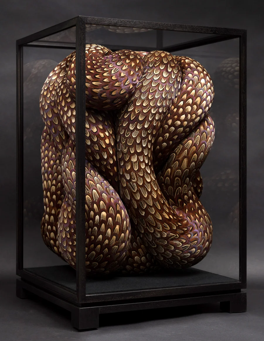 Mixed media with pheasant feathers in bespoke cabinet