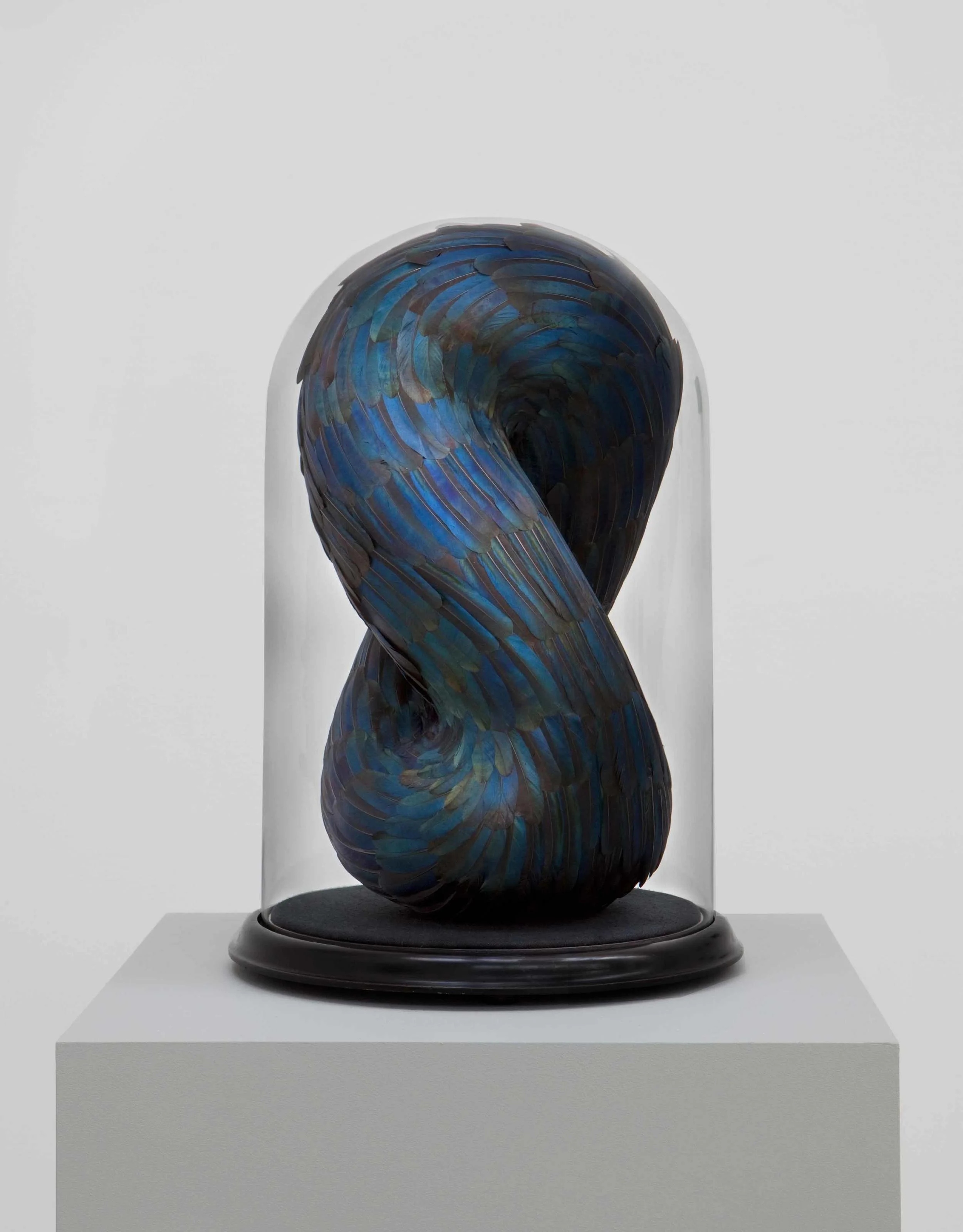 Mixed media with magpie feathers in antique dome